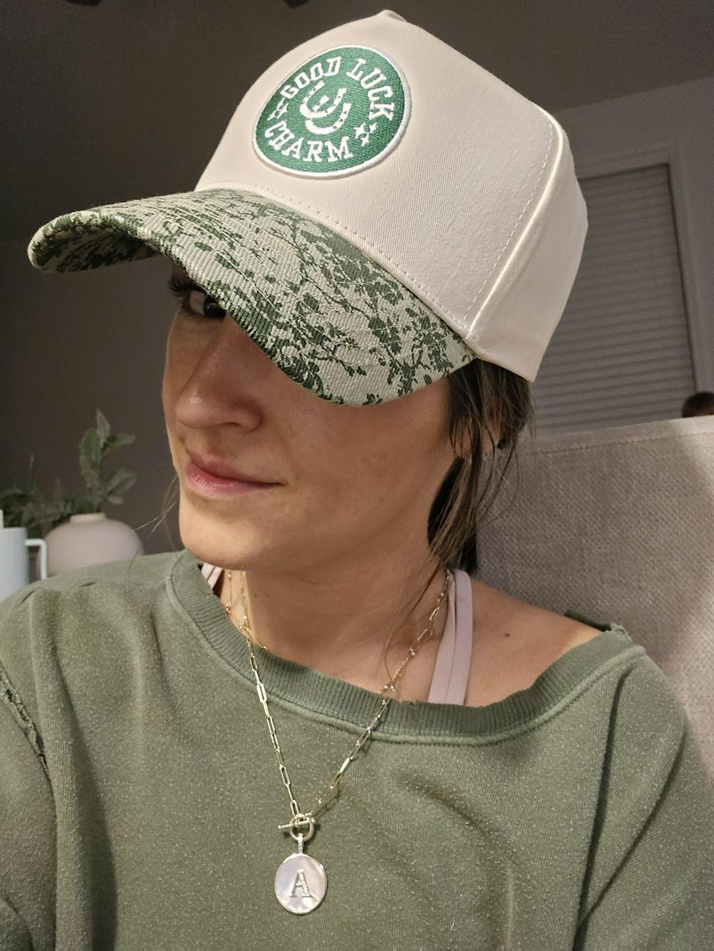 - Green or Green Toile vintage trucker hat, with adjustable snapback