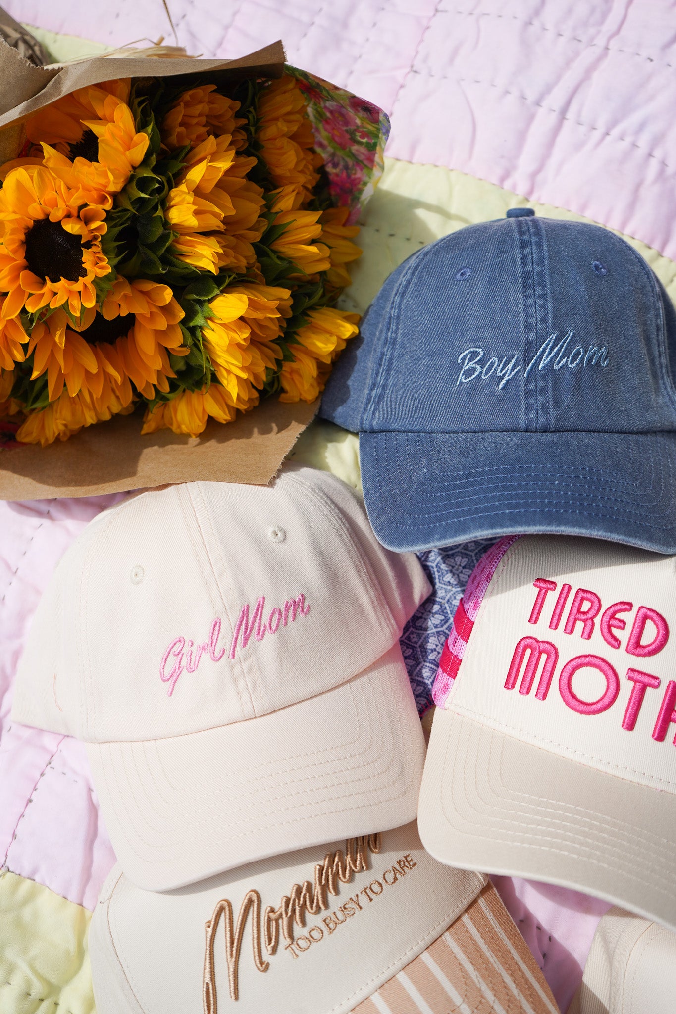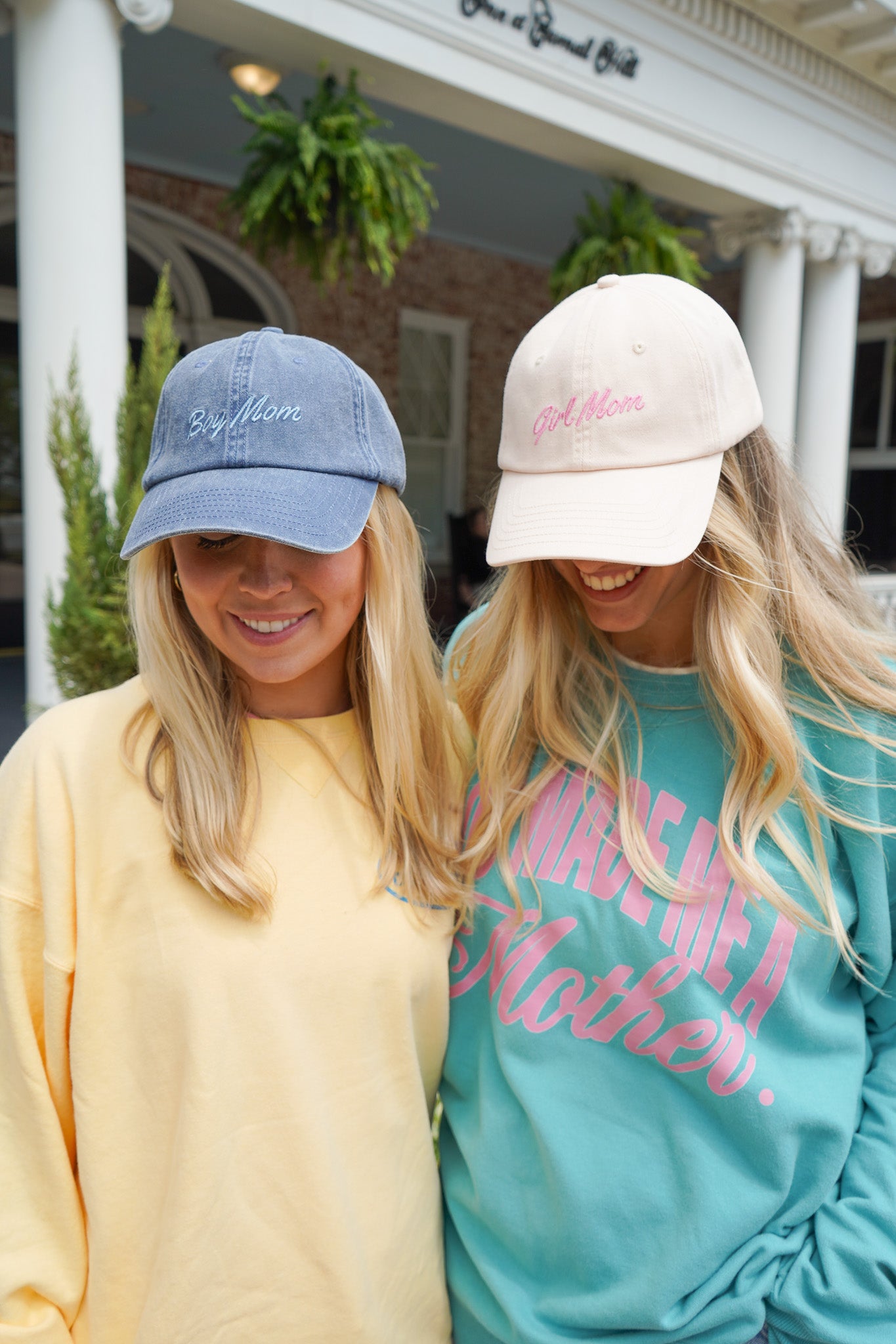 - "Girl Mom" or "Boy Mom" embroidery on the front