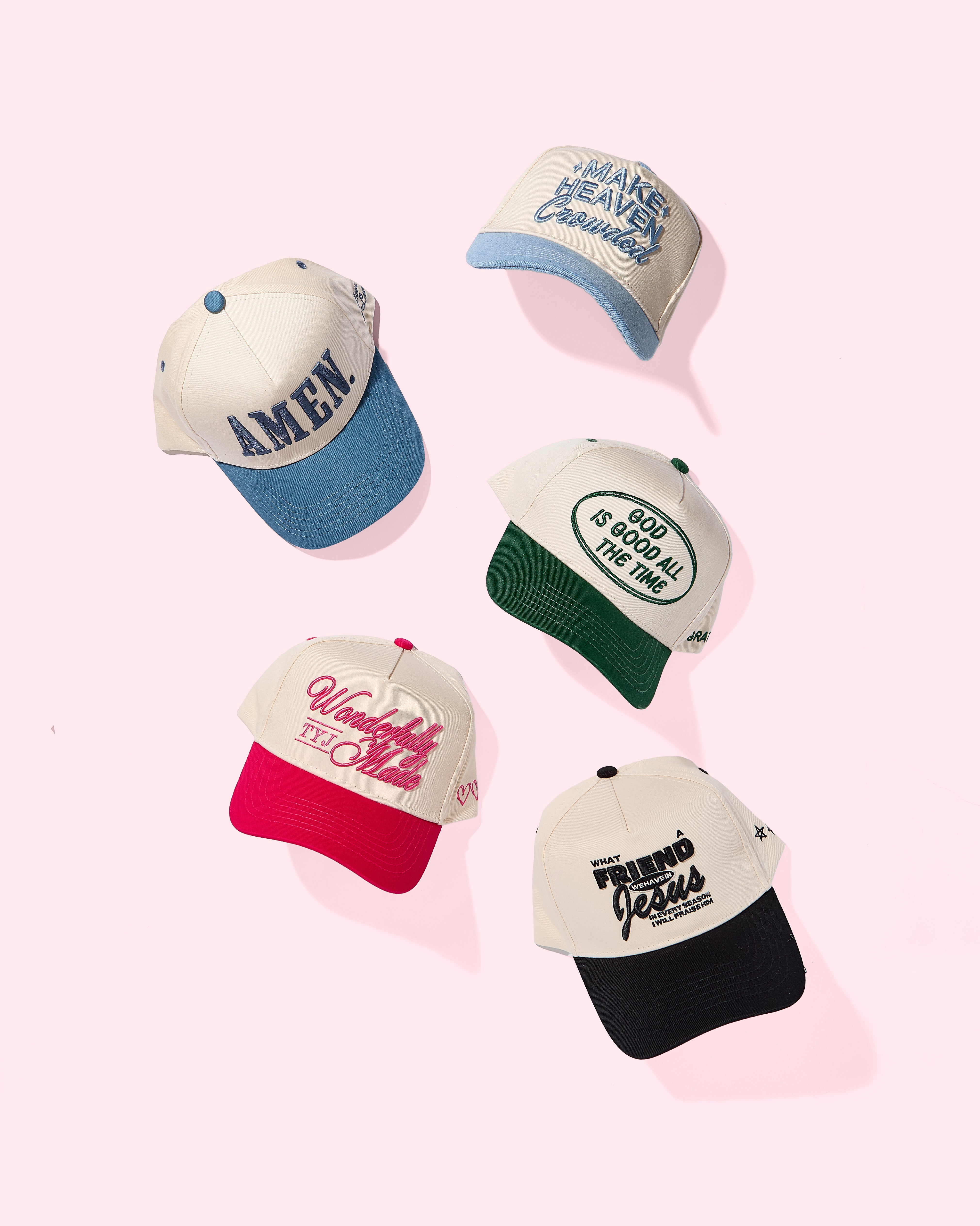 The Blessed Box includes five of our bestselling faith-based hats — a perfect reminder to carry gratitude, joy, and purpose wherever you go!