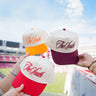 - Vintage trucker hat that comes in red, orange, and maroon!