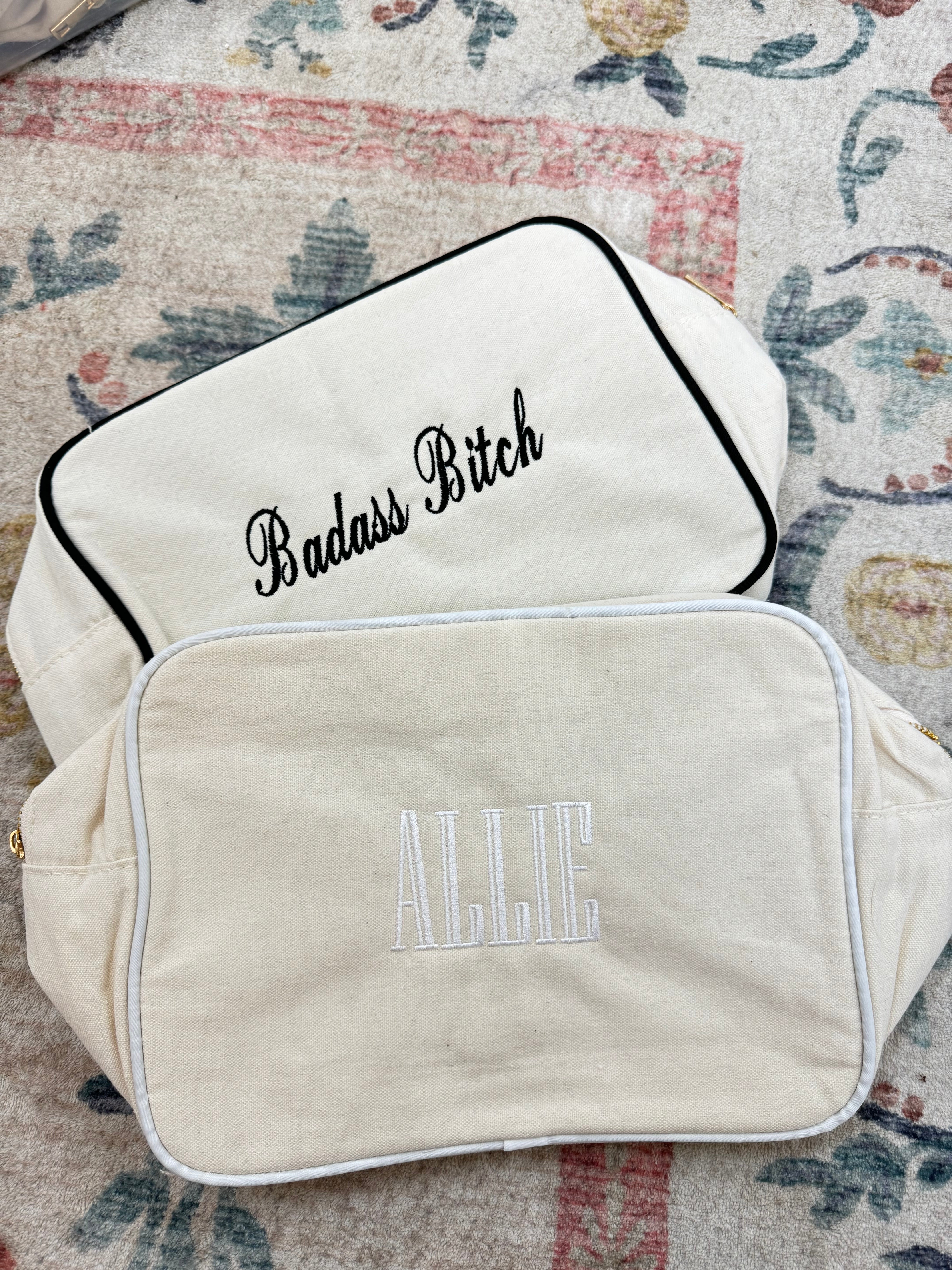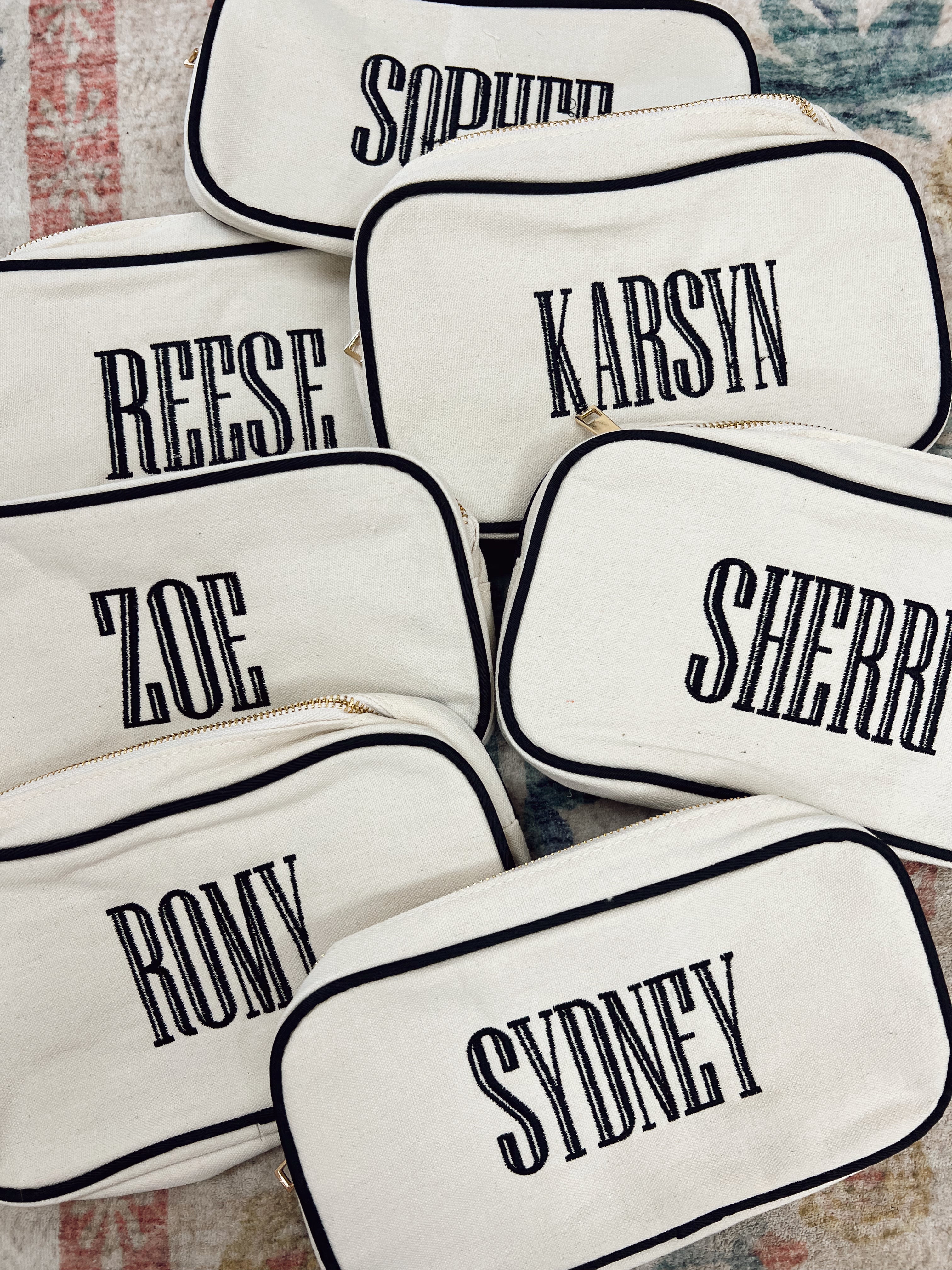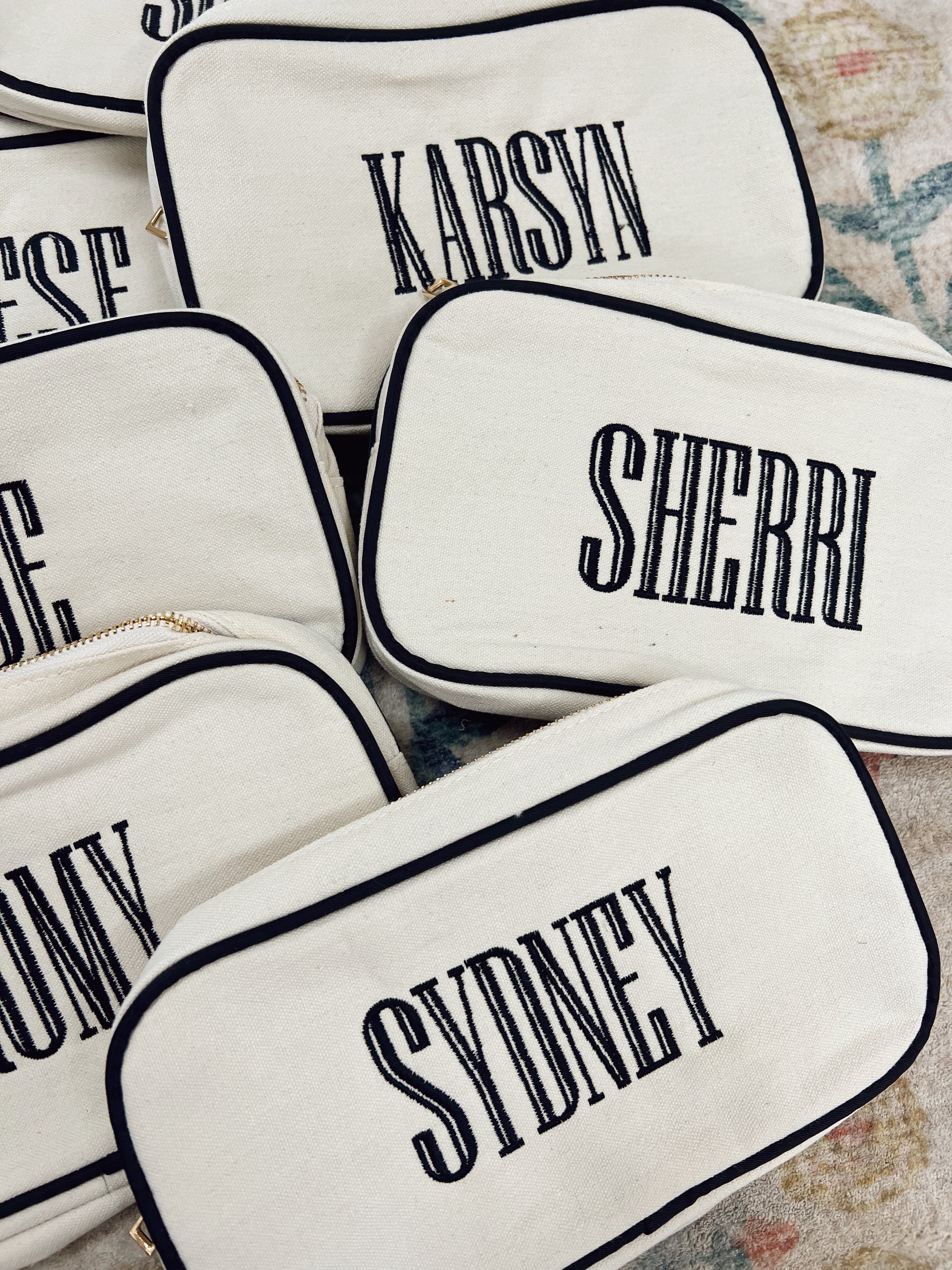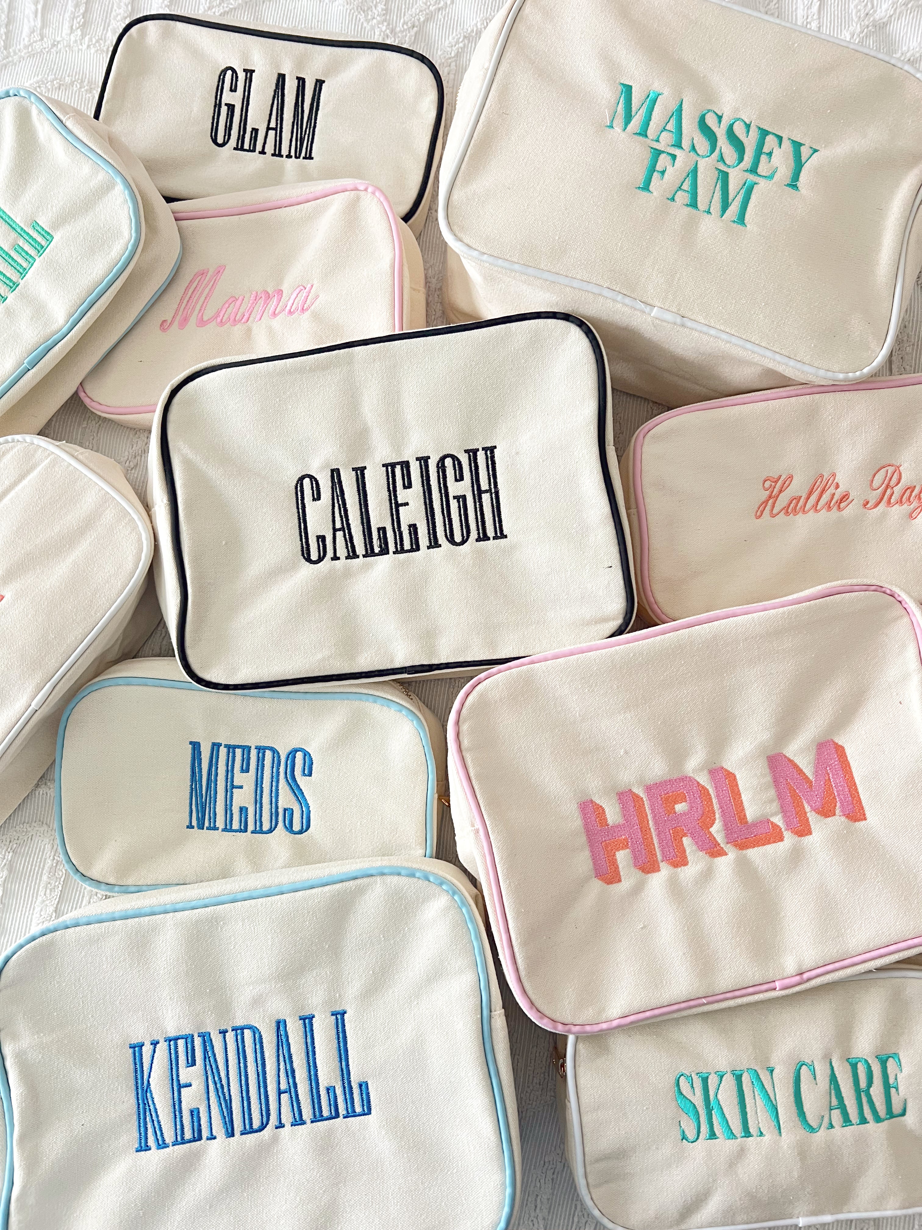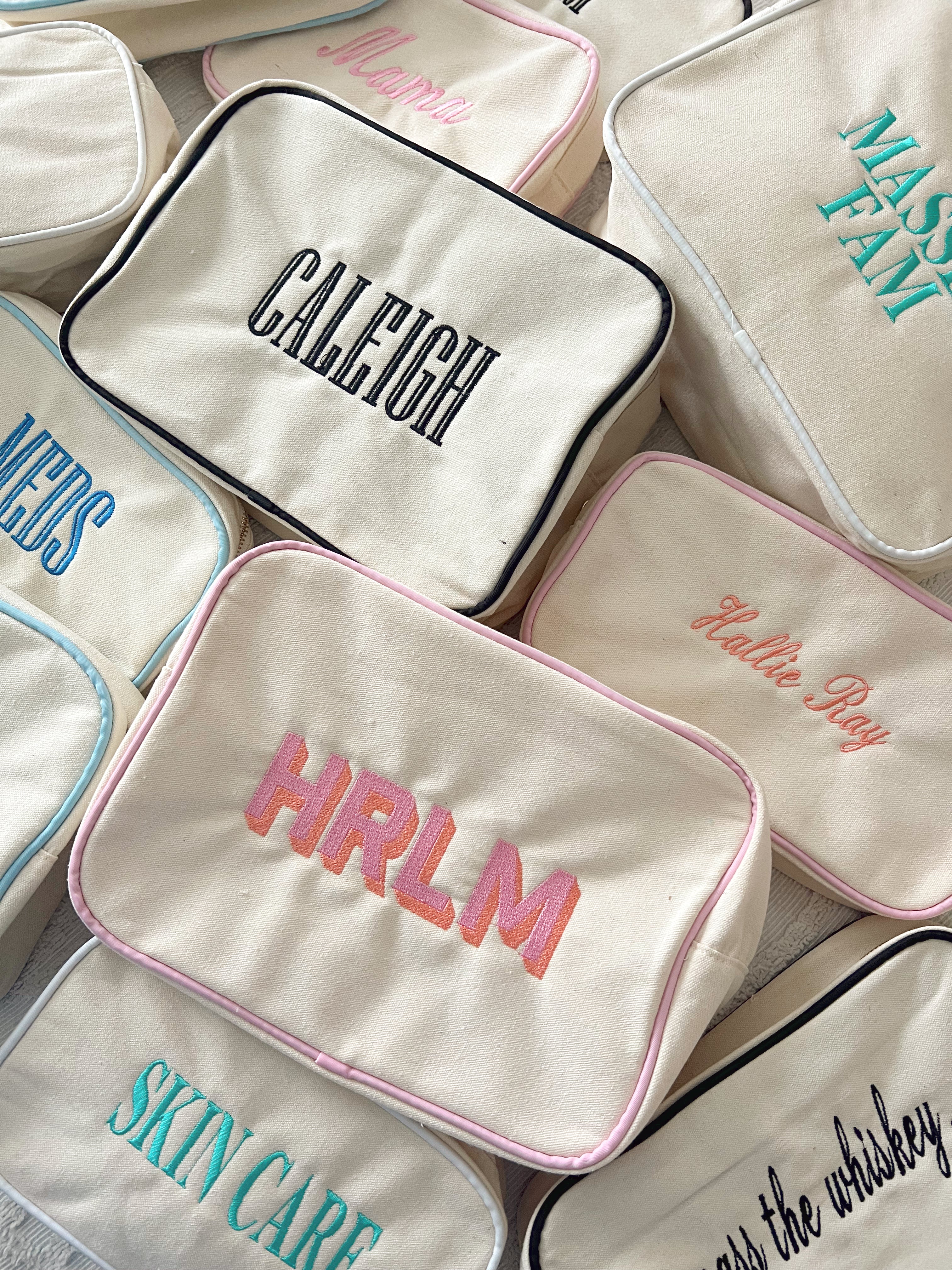 Our Canvas Makeup Bag, the ultimate fashionable accessory for the modern makeup enthusiast! Designed with a blend of style and functionality, this makeup bag is a must-have for anyone who loves to stay organized in the most stylish way possible. Not only is this makeup bag a stylish addition to your daily routine, but it also doubles as a versatile travel companion. It's durable construction and compact design makes it the perfect on-the-go storage solution.